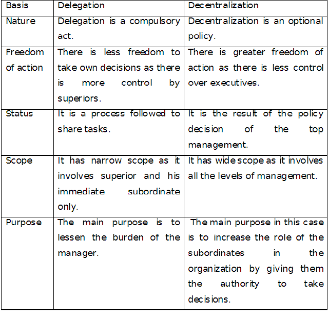 difference between delegation and decentralisation