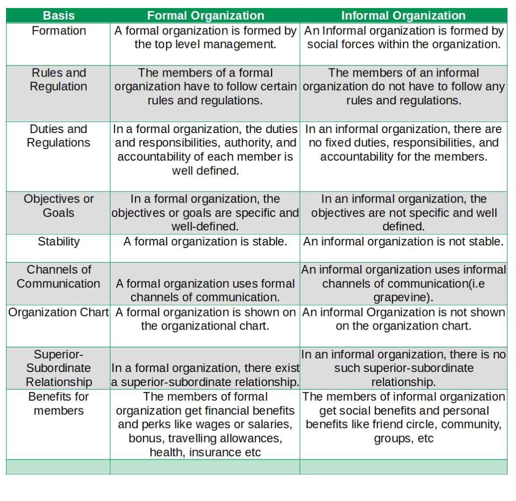 difference between formal and informal organisation: