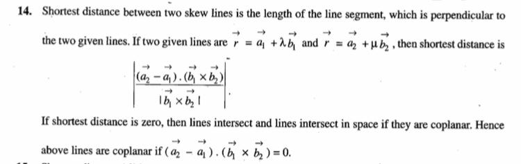 Skew Lines are basically, lines that neither intersect each other nor are they parallel to each other in the three-dimensional space.The shortest distance between skew lines is equal to the length of the perpendicular between the two lines