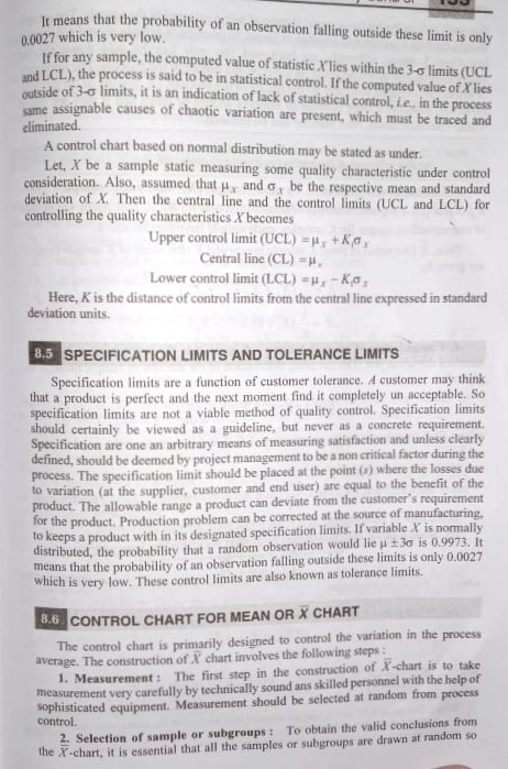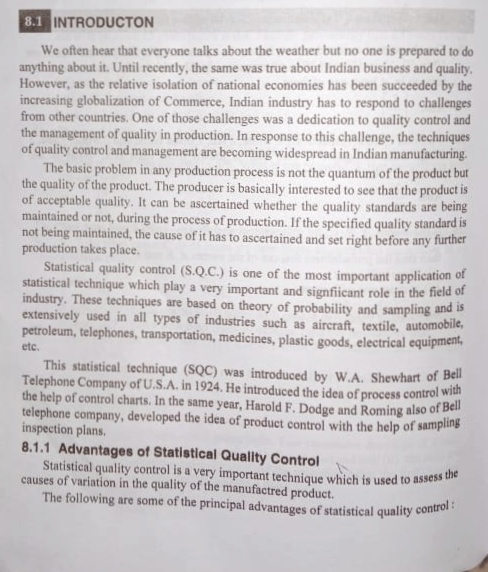 Unit 6 statistical Quality control